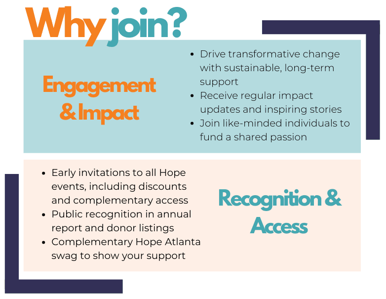 By signing up to make an automated monthly gift, Hope365 donors make it possible for Hope Atlanta to bring their work to life every day of the year. Not only is setting up automatic recurring gifts the easiest, most convenient way to support your favorite mission, but it helps provide year-round support of our services and helps us to plan more effectively, budget more efficiently, and ultimately drive positive outcomes for our neighbors in need.